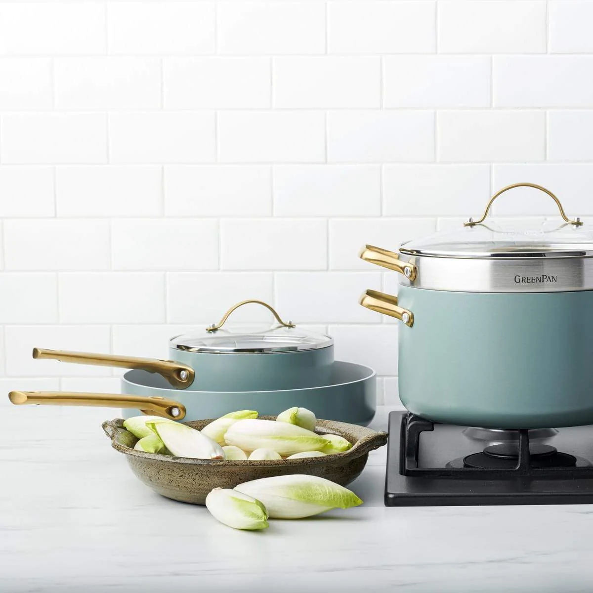 Brighten up your kitchen with the Padova Cookware Set in a cheerful shade of blue that’s as hardworking as it is good-looking. Built from duo-forged hard anodised aluminium, these pans are super sturdy, scratch-resistant, and heat up nice and evenly—no hot spots here! Each piece is coated with Thermolon™ ceramic non-stick, reinforced with diamonds for added strength and effortless food release. Best part? It's totally free from nasties like PFAS, PFOA, lead, and cadmium. From sizzling stir-fries to golden frittatas and seared seafood, this set’s ready for whatever’s on the menu.