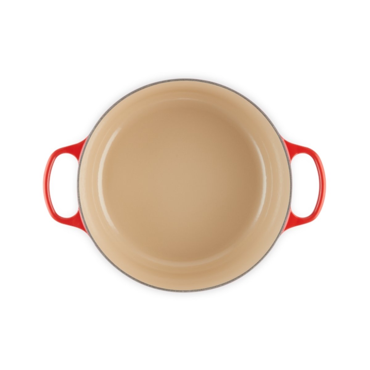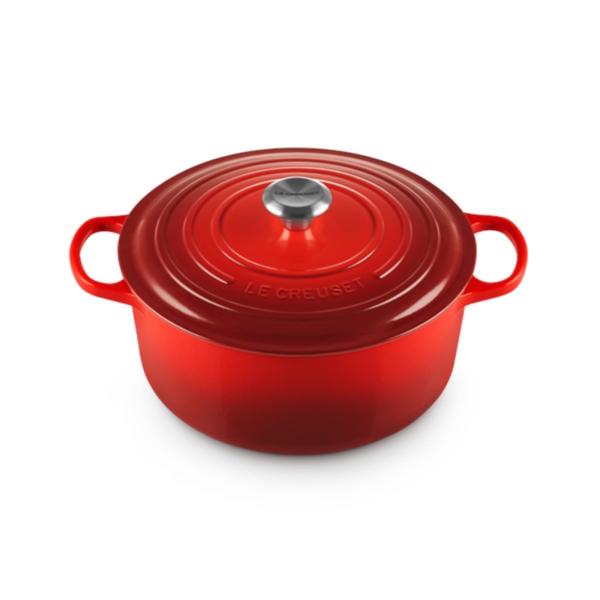 The Le Creuset Signature range features, easy-grip handles, tight-fitting lid, toughened, easy-to-clean enamel interior, and a stylish, stainless steel knob.