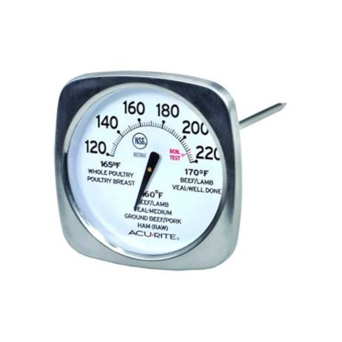 Looking for a reliable and oven-safe meat thermometer? Look no further than AcuRite’s Gourmet Meat Thermometer! Durable and easy to read, the dial highlights recommended internal temperatures for cooking poultry, beef, veal, lamb, pork and ham, ensuring that your meal is cooked to perfection. Simply leave the thermometer in your meat as it cooks in the oven – it’s that easy! So why risk an undercooked dinner when you can have complete peace of mind with AcuRite’s Gourmet Meat Thermometer?