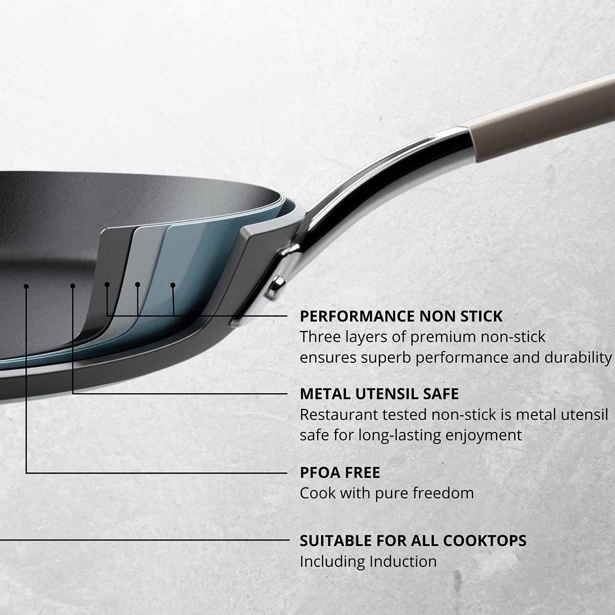 - Suitable for all cooktops including induction.