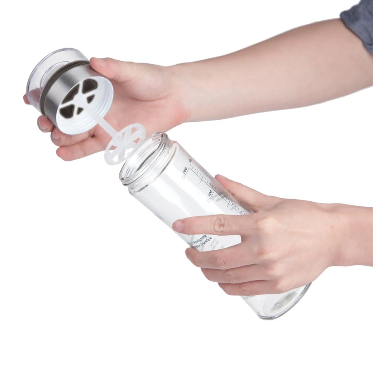 Simply add your ingredients, insert the removable mixer, place the lid on and shake for the best salad dressing ever.