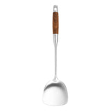 Forged from heavy gauge stainless steel, they are built to endure high temperatures, ensuring top-notch performance even in demanding cooking conditions. With ergonomically crafted rosewood handles for a comfortable grip, and equipped with a hanging hook for easy storage and access, these utensils keep your kitchen organized and clutter-free.