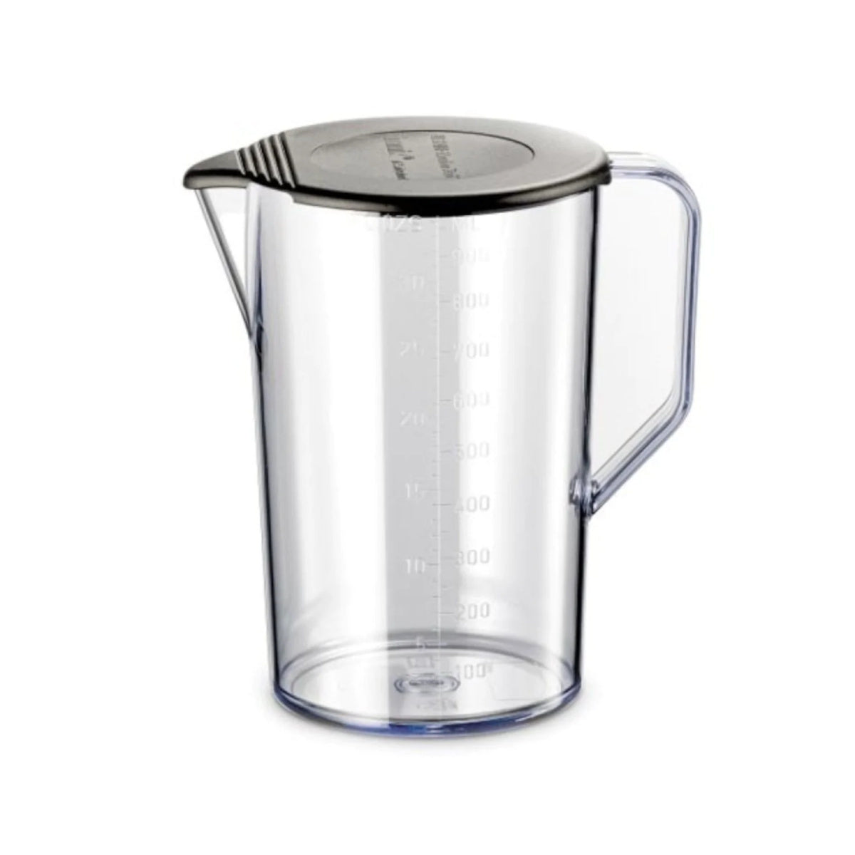 The handle makes this jug easy to hold. Emptying liquids from the jug is also no problem. New back colour lid is useful for storage.
