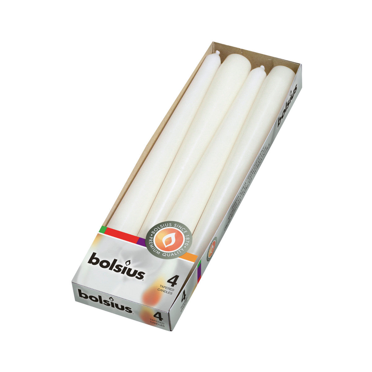 Create an inviting atmosphere with the Bolsius Tapered Candles in white. This set of four 24.5cm candles is perfect for dinners, celebrations, or simply adding a touch of elegance to your home decor.
