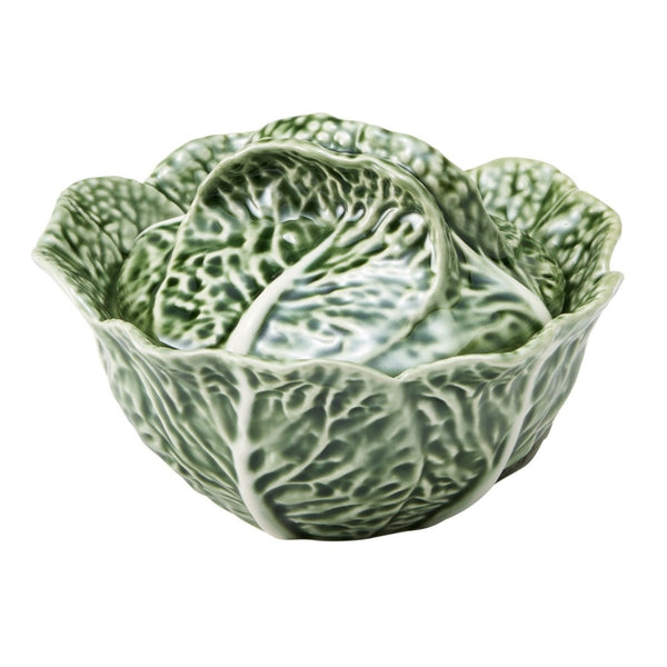 Introducing the Bordallo Pinheiro Cabbage Condiment Pot! This fun and stylish condiment pot is perfect for adding a touch of personality to your dinner table. Fill it with your favorite condiments and spices and enjoy enhanced flavor in every bite. The textured surface features intricate white detailing on a green tonal background, giving your meal a gourmet presentation. Made in Portugal from high-quality earthenware, this pot is durable and dishwasher safe, making cleanup a breeze. Whether you're entertaining guests or enjoying a quiet meal at home, the Cabbage Condiment Pot from Bordallo Pinheiro is sure to elevate your dining experience.