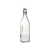 The 34 oz / 1 L glass bottle from Bormioli Rocco's Swing collection features a square shape and an airtight seal. Ideal for storing fruit juices, lemonade, milk, or coulis, this Swing Bormioli Rocco glass bottle ensures the preservation of flavors with its airtight seal.