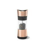 These premium copper finish mills feature a modern shape and intuitive design, which look beautiful on a table and brings gourmet seasoning and control to everyday kitchens