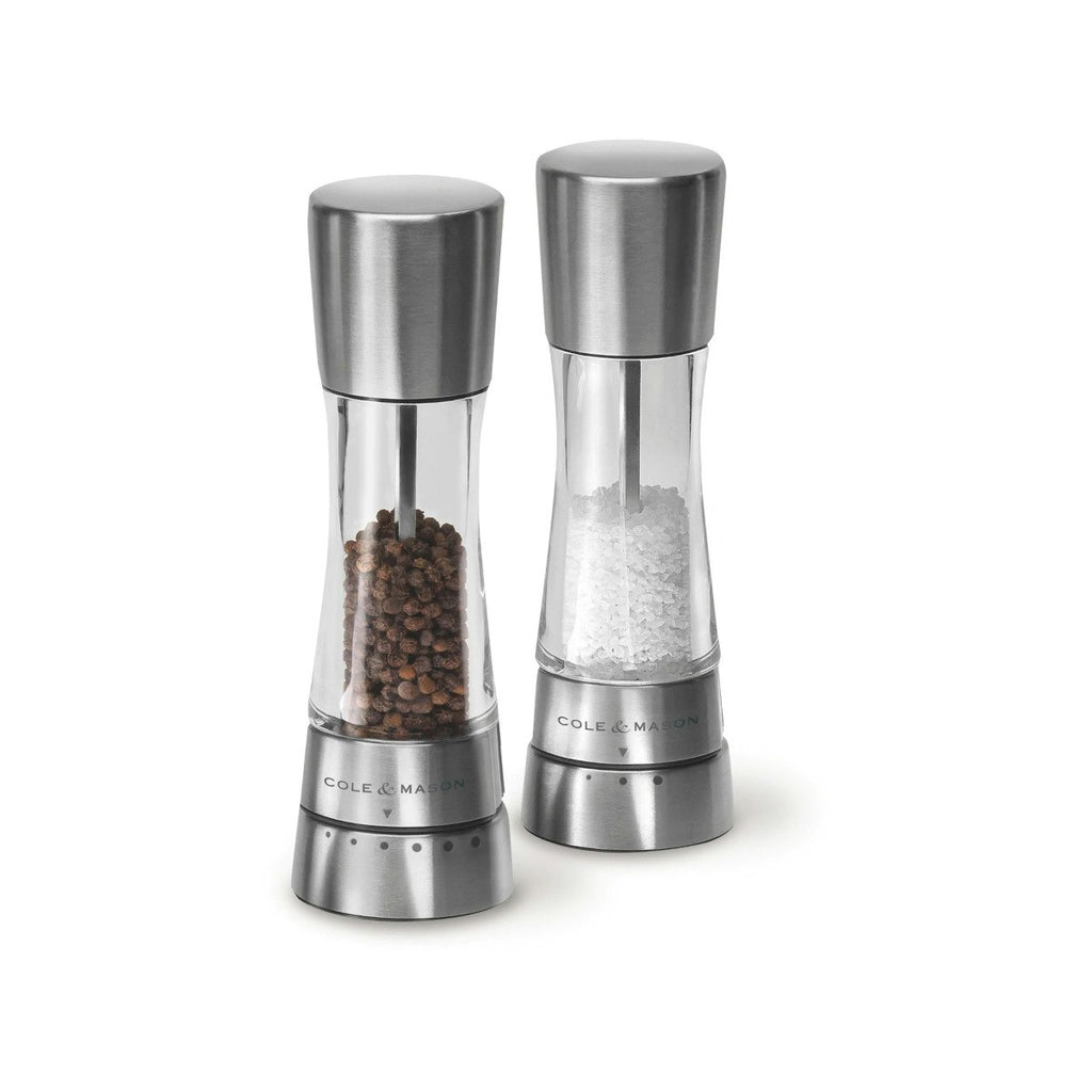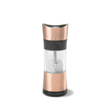 These premium copper finish mills feature a modern shape and intuitive design, which look beautiful on a table and brings gourmet seasoning and control to everyday kitchens