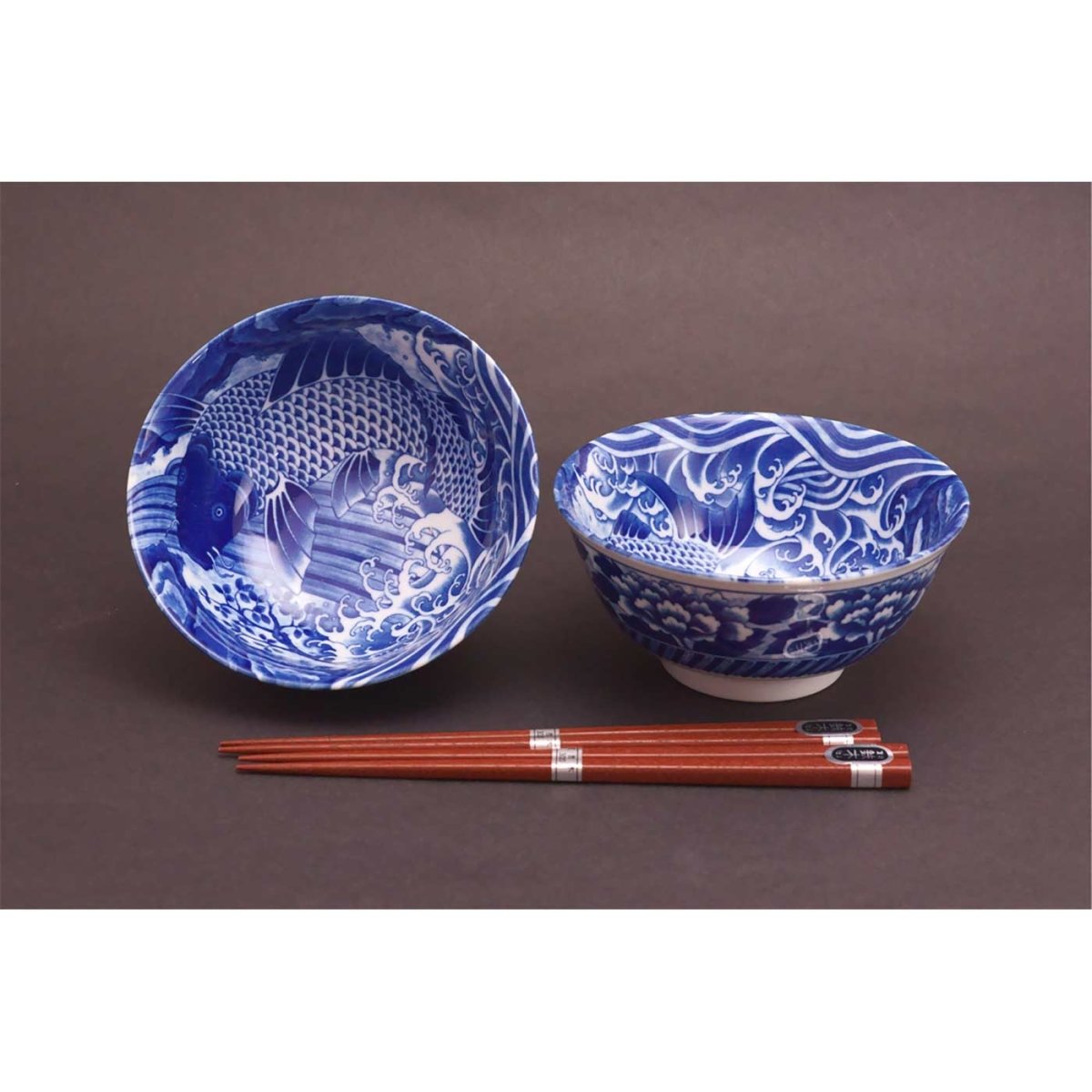 Concept Japan Aizome Koi Carp Blue Bowl Chopstick Set
