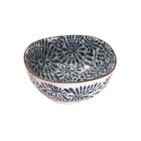 The intricate design features a blue floral pattern upon a cream background. Exquisitely glazed, the finished product is a stunning creation with a vintage, organic feel.