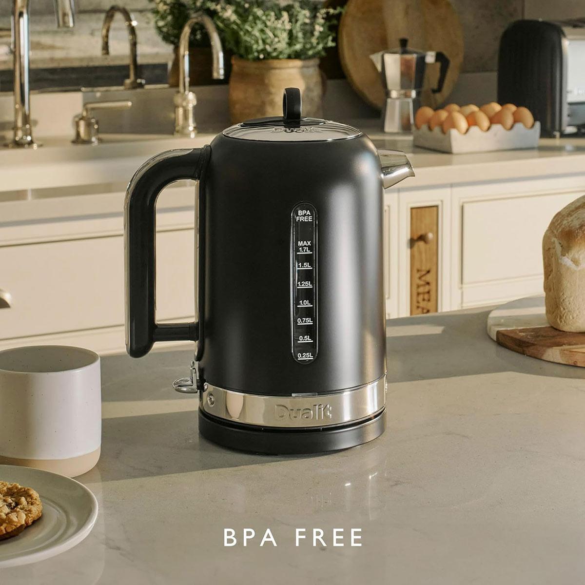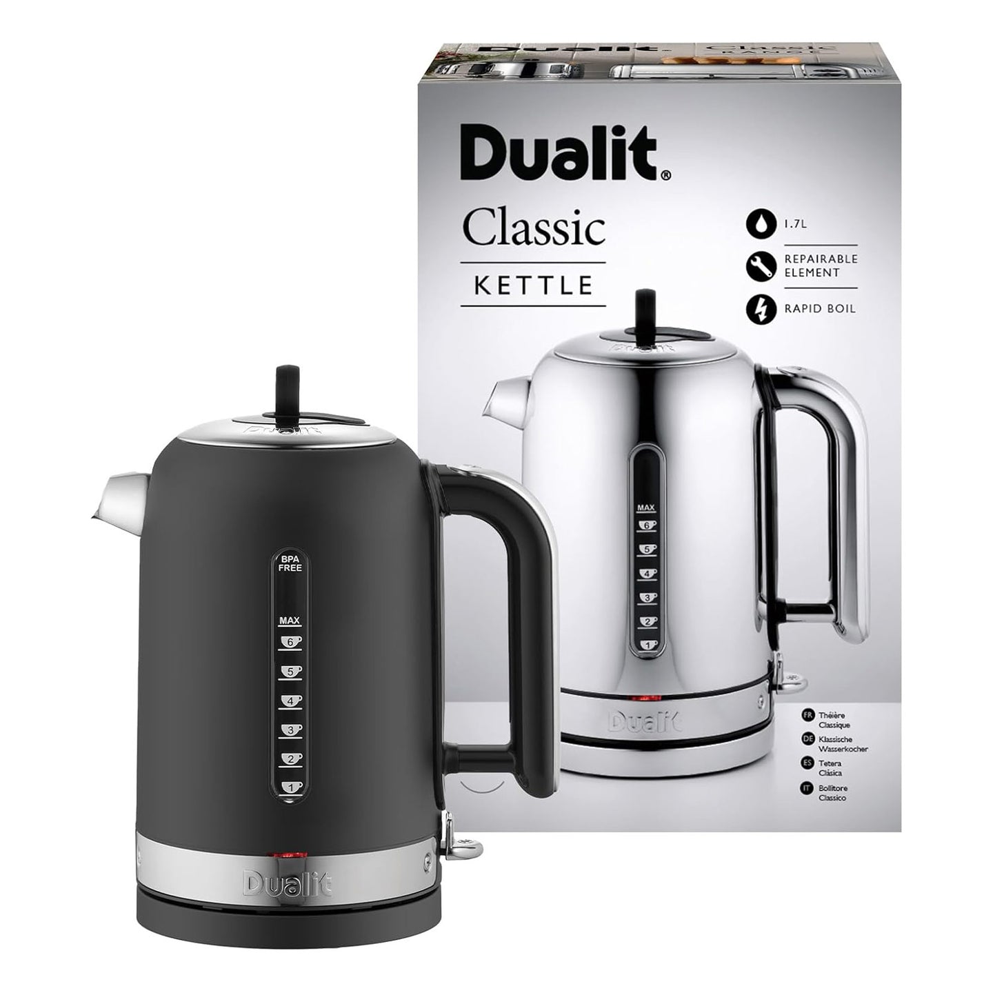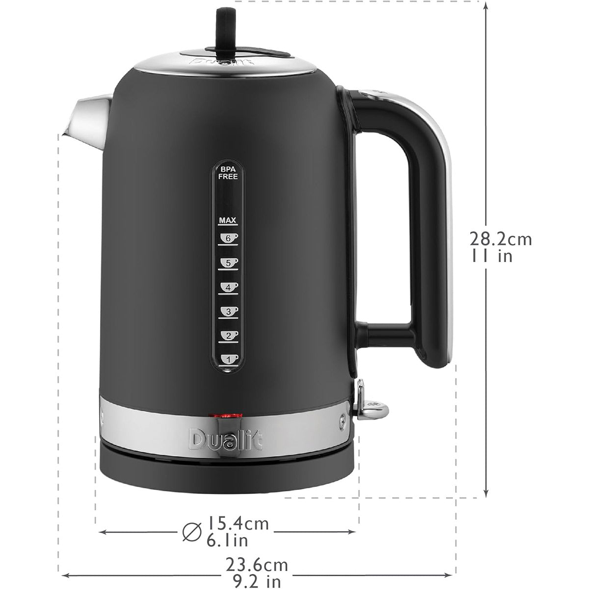 The Dualit Classic Kettle in Matte Black combines timeless design with advanced functionality, offering a premium addition to any kitchen. Crafted with meticulous attention to detail, this kettle ensures rapid boiling and a peaceful experience, making it ideal for daily use.