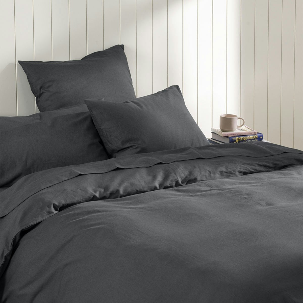 Dream provides the solid foundation to create a minimalist aesthetic or use it as your anchor pieces to accentuate high pattern quilts and pillows. This bedding collection offers a blend of European Linen and Cotton to deliver softness, strength and durability. Available in Storm, this dusty charcoal hue reflects the moody winter coastline.