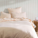 Dream provides the solid foundation to create a minimalist aesthetic or use it as your anchor pieces to accentuate high pattern quilts and pillows. This bedding collection offers a blend of European Linen and BCI Cotton in four solid colours for a classic, effortless finish. Available in a subtle Peach, this soft summer hue will tell a story on its own, or pair it with vibrant pattern bedding.