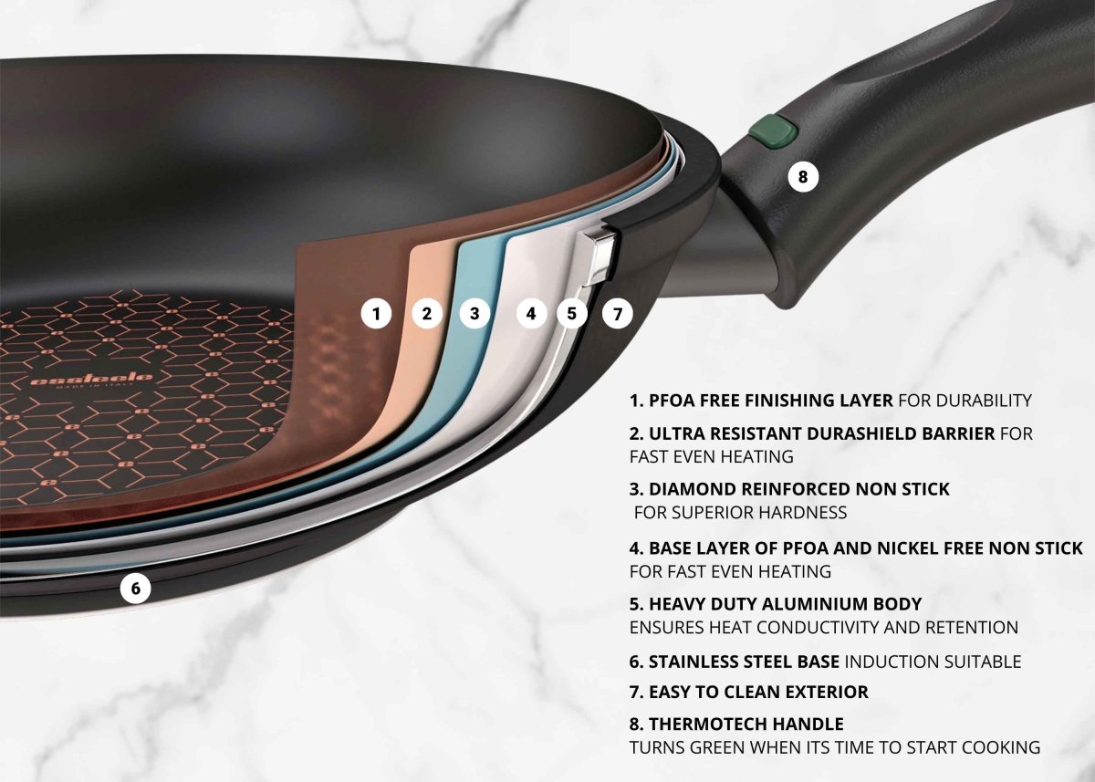 - Built to last. Diamond-reinforced nonstick coating delivers extra strength and durability.