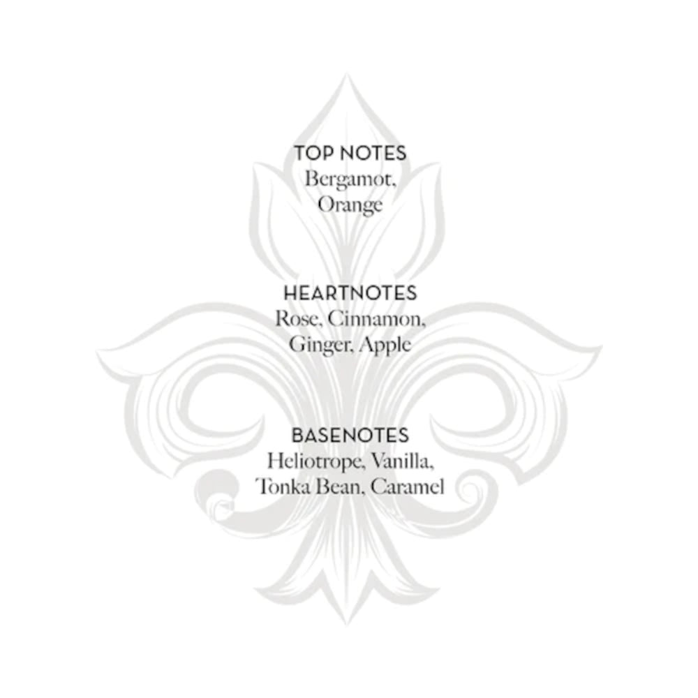- Base Notes: heliotrope, vanilla, tonka bean, caramel