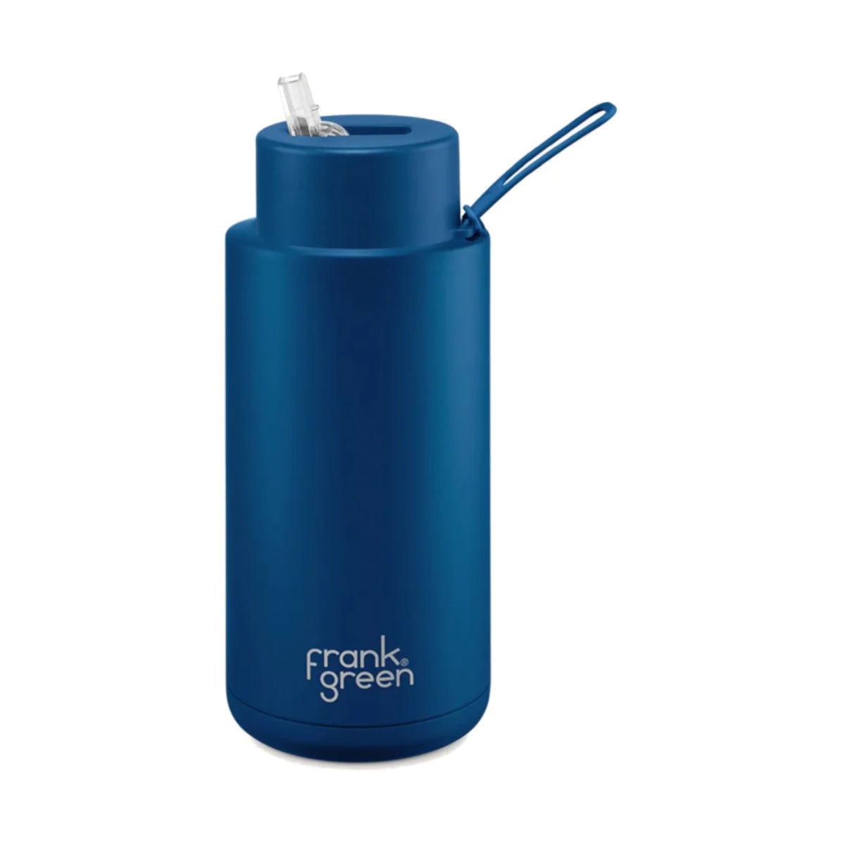 Frank Green Ceramic Reusable Bottle with Straw Lid Deep Ocean 1L