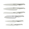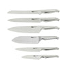 Contains: Asian Utility Knife 12cm, Utility Knife 15cm, East/West Santoku Knife 17cm, Bread Knife 20cm, Cook's Knife 20cm, Carving Knife 20cm, Magnetic Hexagonal knife block