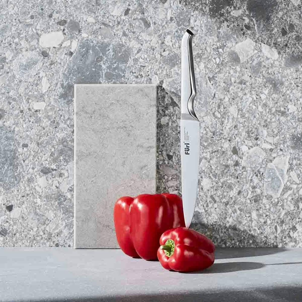 Furi Pro knives offer superior knife cutting performance for both the professional chef and home cooking enthusiast. Engineered with the innovative Furi ‘reverse-wedge’ handle. The handle locks into the hand for a more secure grip, reducing hand fatigue. All blades are made with a high carbon Japanese stainless steel alloy, for a knife that holds its edge for longer whilst remaining easy to sharpen.
