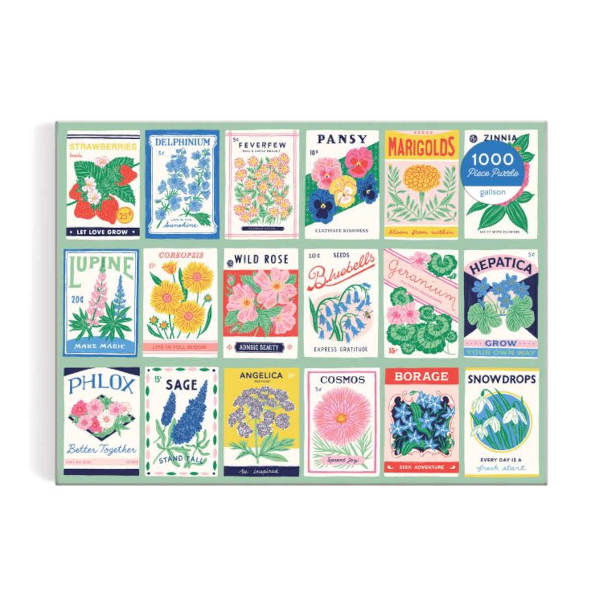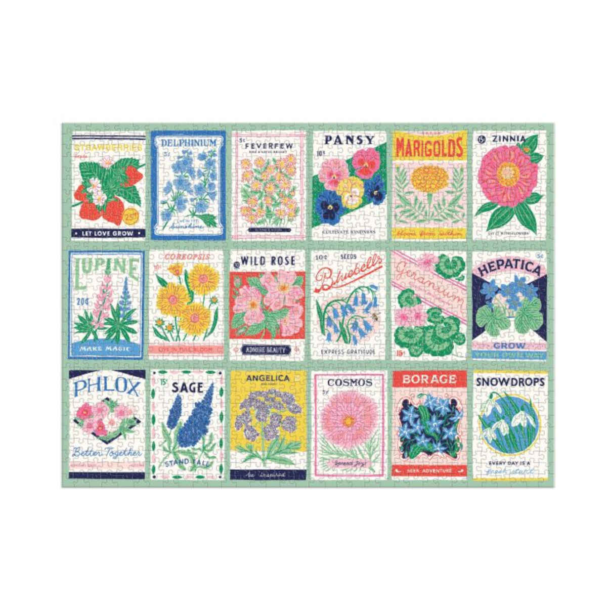 Get ready for hours of puzzling fun with the Galison 1000 Piece Ever Upward Grow Your Own Way Puzzle! This captivating puzzle showcases stunning vintage-style flower seed packets, featuring favourites like Pansies, Marigolds, Zinnias, and more. As you piece together each section, you’ll discover the names of these beloved blooms, making it a delightful and educational experience for the whole family. The puzzle comes with an insert displaying the full image, so you can easily reference it as you work your way through this beautiful garden scene.