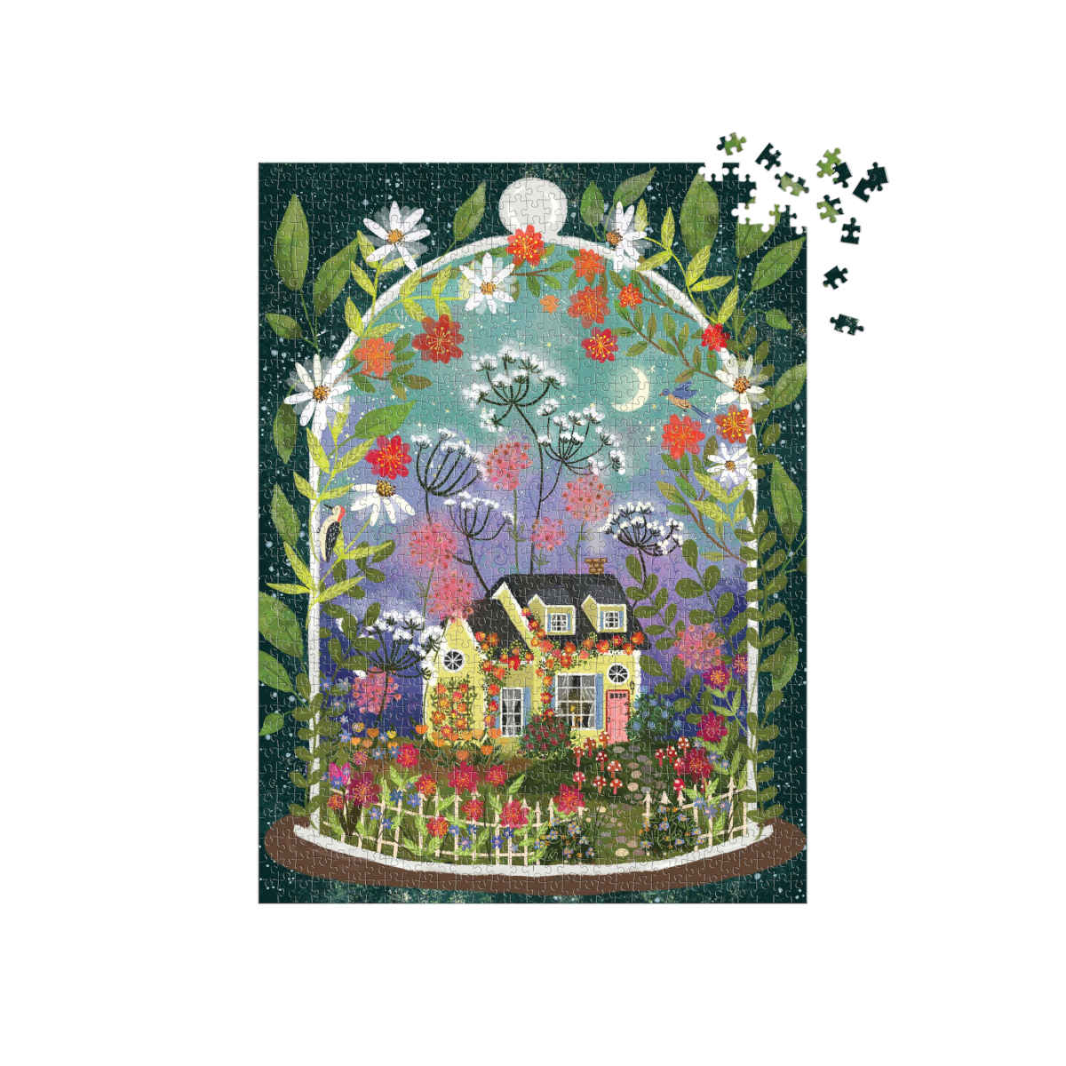 Get ready for a fun, relaxing challenge with the Bloomarium 1000 Piece Puzzle from Galison! This delightful puzzle brings a cosy cottage surrounded by vibrant blooms inside a charming terrarium. With intricate details like colourful daisies and a moonlit sky, it’s the perfect puzzle for the whole family to enjoy together.