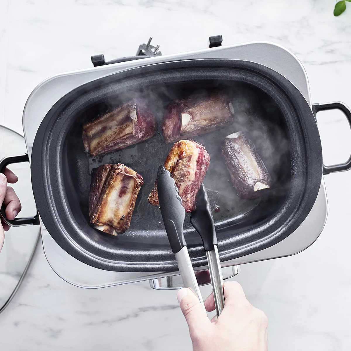 Introducing this top-notch slow cooker, perfect for your kitchen! Get ready to brown your meat and veggies in the pot, then let it gently simmer to perfection. Take it easy while cooking, then clean up in a flash with Thermolon™ Volt, a safe, PFAS-free ceramic nonstick coating made especially for kitchen appliances.
