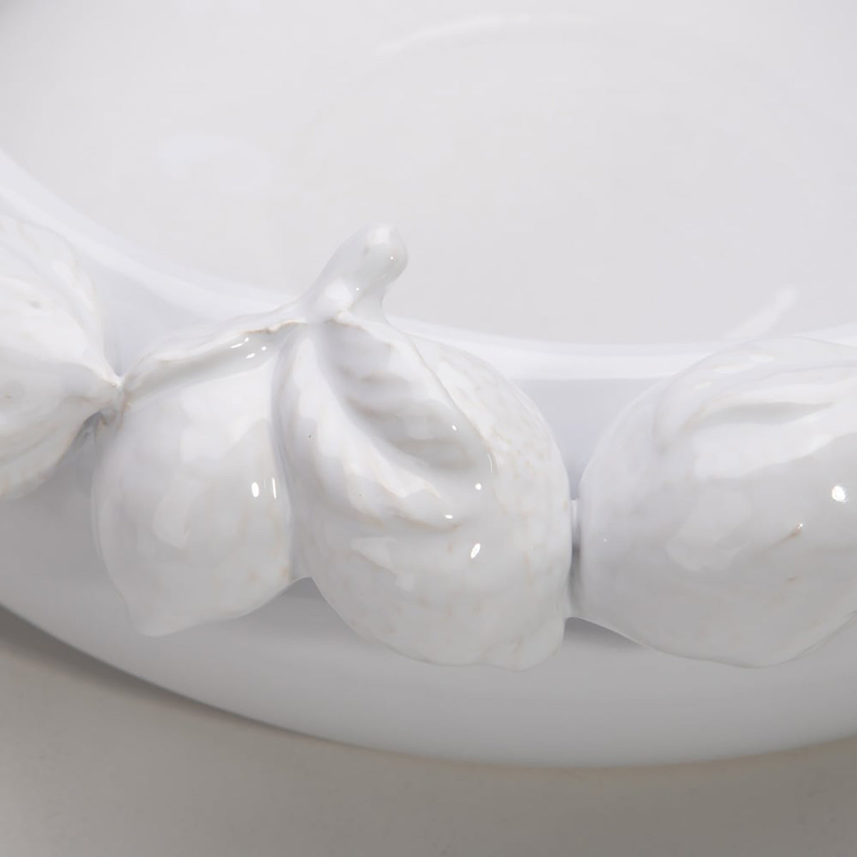 Mode Lemon Bowl White 33cm is a beautiful ceramic serving piece decorated with lemons around the rim which is perfect for fruit or as a table centrepiece - fill with lemons for a striking feature piece! Also available in Green.