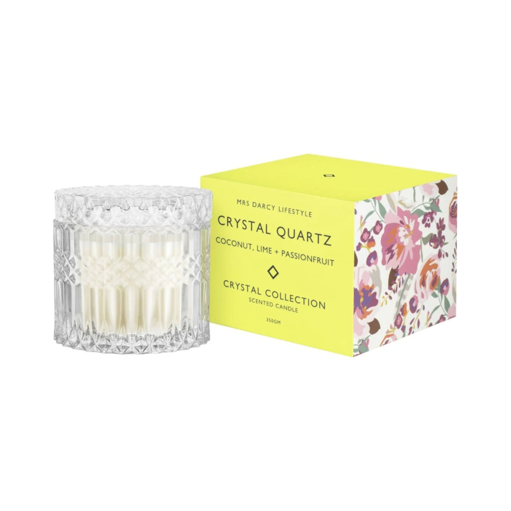 Mrs Darcy's Crystal Quartz Candle evokes summertime fun with a distinctive blend of sweet and fruity tropics. Featuring natural wax and crystal quartz, this 350g candle offers hours of burn time and fills your home with a warm, inviting scent. With a mixture of natural ingredients, it's perfect for anybody looking to enjoy the luxury of a summer holiday without having to leave the house.