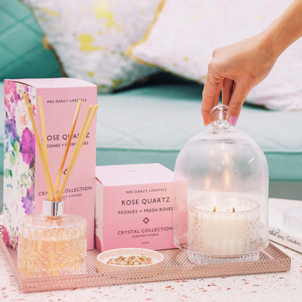 Mrs Darcy Rose Quartz Peonies + Fresh Roses Candle 350g