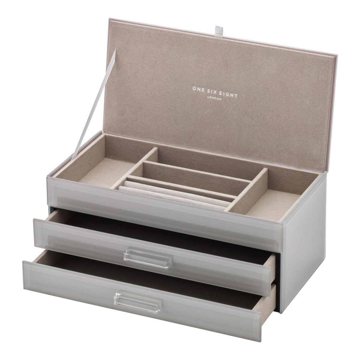 One Six Eight London Gabriella Jewellery Box with Drawers Cool Grey Large