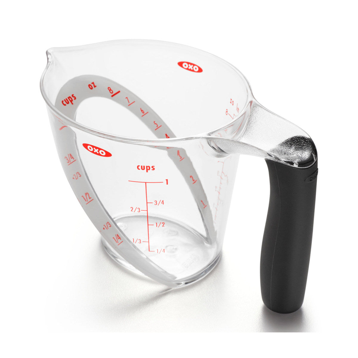 You'll love this OXO Angled Measuring Cup! The angled design lets you measure ingredients accurately from above, without having to bend or lift the cup to eye level. Plus, the clear markings for cups, ounces, and millilitres make it easy to see how much you're measuring. This measuring cup is perfect for anyone who loves to cook or bake!