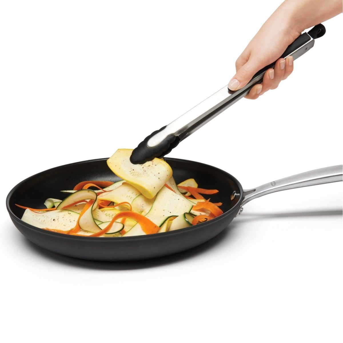 Non-stick-friendly, sturdy and secure, for effortless turning. The Tongs with Nylon Heads are made of sturdy stainless steel, with soft, comfortable, non-slip grips. The scalloped nylon heads are safe for non-stick cookware, and securely hold food. Heat resistant to 4ºF. Tongs lock closed for convenient storage.