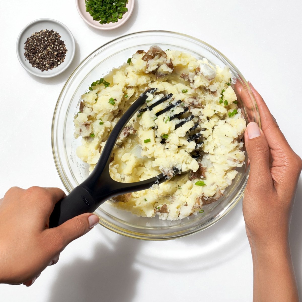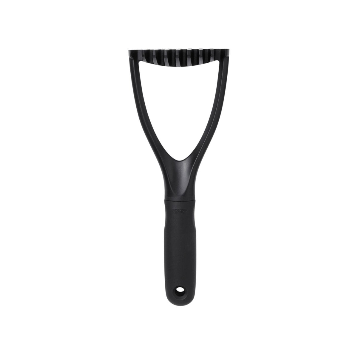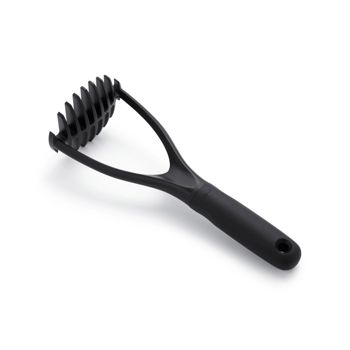 A sturdy masher that won't harm non-stick cookware. Mash with ease inside your non-stick pan with the Nylon Potato Masher. Its broad handle is comfortable and won't slip out of your hand. Constructed of sturdy nylon, the Masher is high heat-resistant and safe for non-stick cookware and dishwashers.