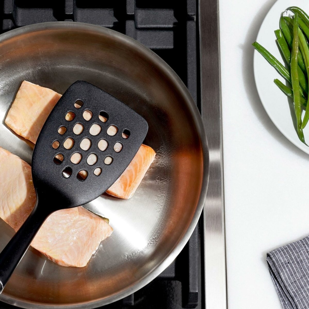Thoughtfully designed for non-stick-friendly flipping. The Nylon Square Turner is ideal for flipping eggs, grilled cheese, and more. Our nylon tools are a cut above, featuring oversized heads, extra-long, sturdy necks and comfortable grips. Heads are high heat-resistant and won't scratch non-stick cookware.