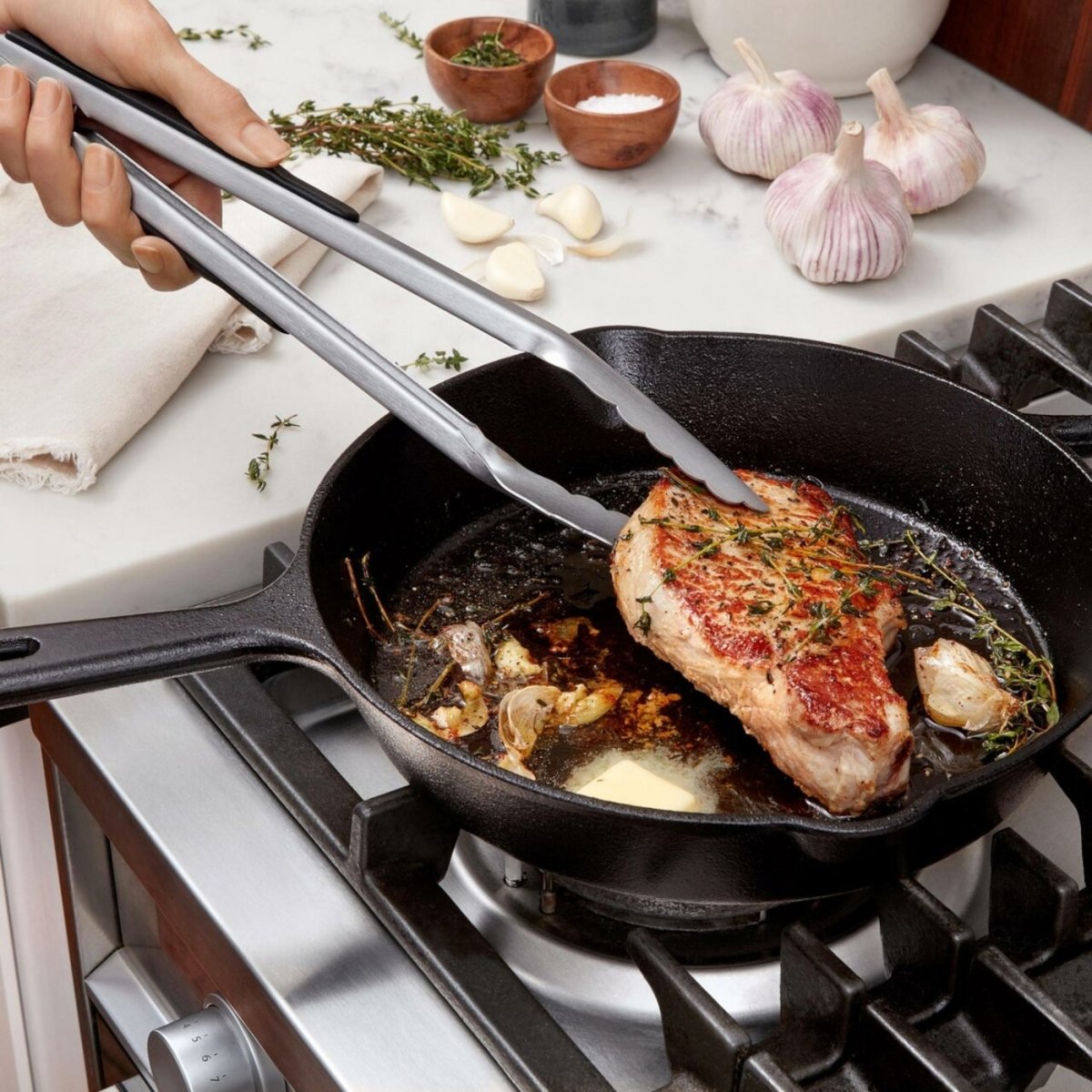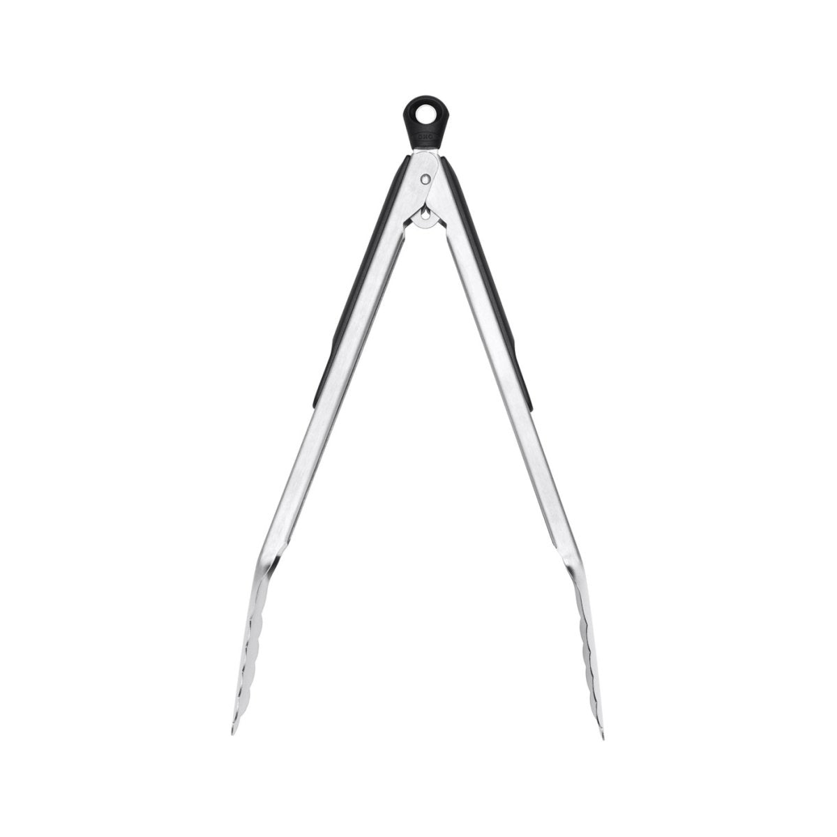 Sturdy and comfortable for effortless grabbing and flipping. Our tongs feature brushed stainless steel with soft, non-slip handles and comfortable thumb rests. Easily lock in the closed position for convenient storage. The large pull-tab for locking also doubles as a hole for hanging.