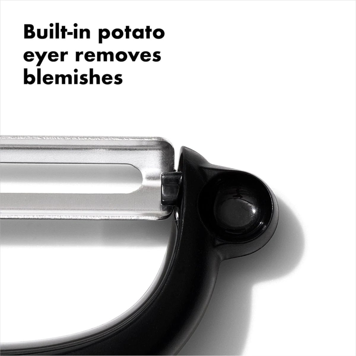 A chefs favorite, designed for comfort and efficiency. Named for its shape, the Y Peeler features a sharp, stainless steel blade that glides through even the toughest fruit and vegetable skins with ease. The soft, comfortable handle cushions your hand as you peel, and is non-slip, even when your hands are wet.