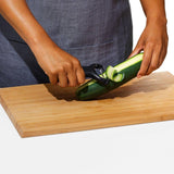 - Sharp, hardened stainless steel blade easily peels cucumbers, apples and more