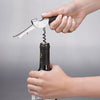 Our Double Lever Waiter's Corkscrew combines slim, compact form with no-fuss function. The non-stick screw glides smoothly into corks, then the second lever retracts for easy cork removal. Bottle opener is integrated into the comfortable, non-slip handle. Foil cutter folds out of the handle.