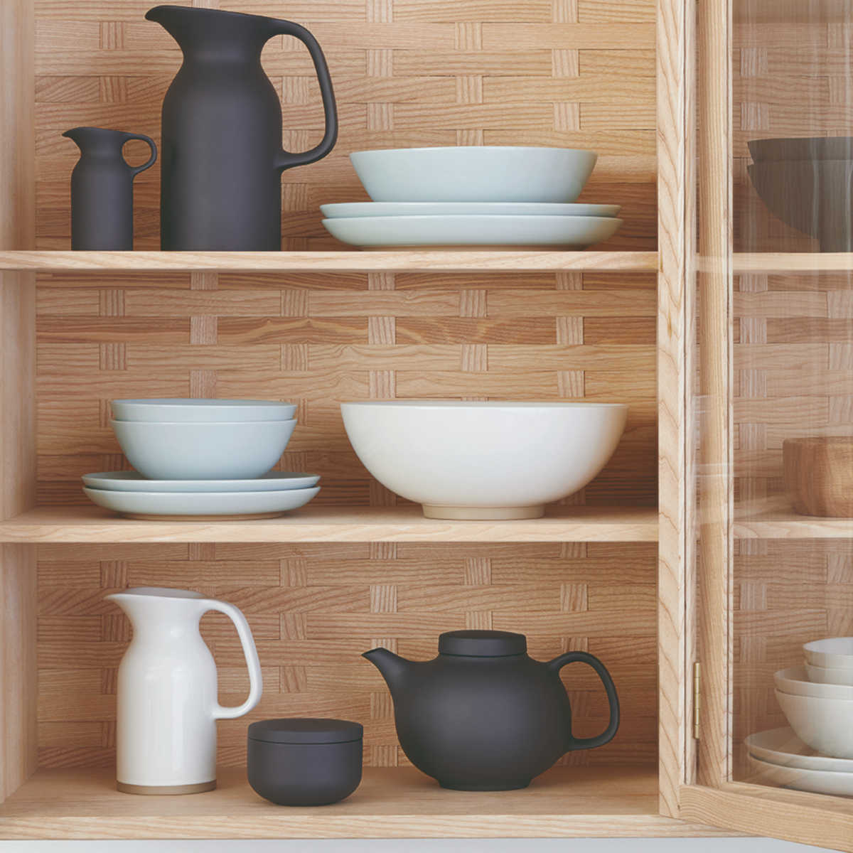 A timeless collection of tableware inspired by a sense of craftsmanship and the handmade, Olio represents a miscellaneous assortment of things. Formed from a collaboration between Royal Doulton and Barber & Osgerby, the functional tableware designs mix textural elements with classic forms to result in every day, durable pieces. The striking colour palette consists of graphic black, timeless white and a new celadon blue so pick your favourite or mix and match designs for an eclectic look.