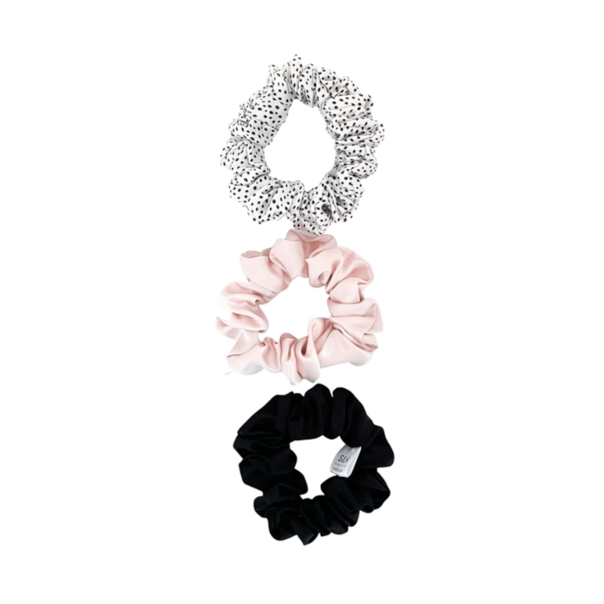 Silk Magnolia 3 Pack Scrunchies Black/Pink/Spotty Dots