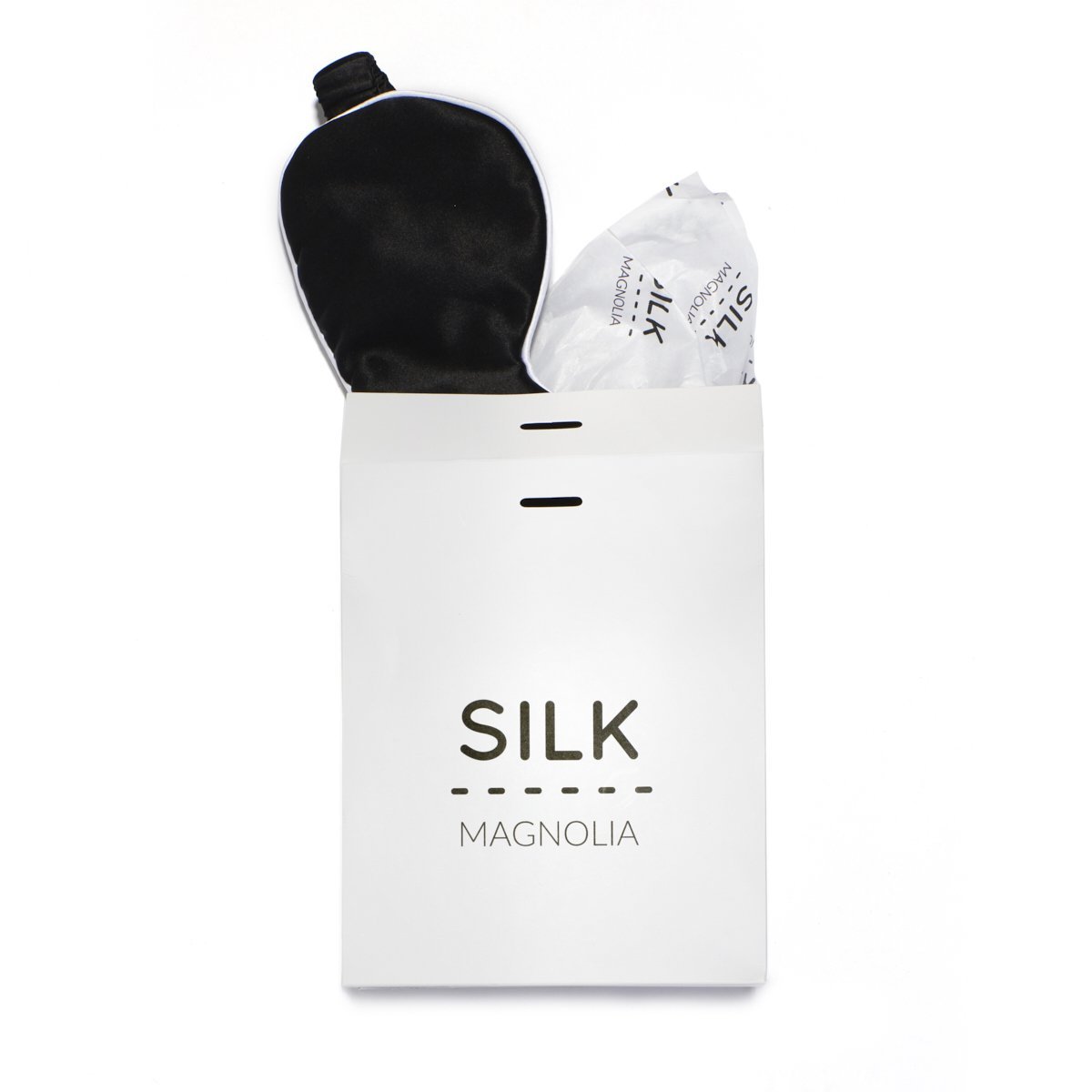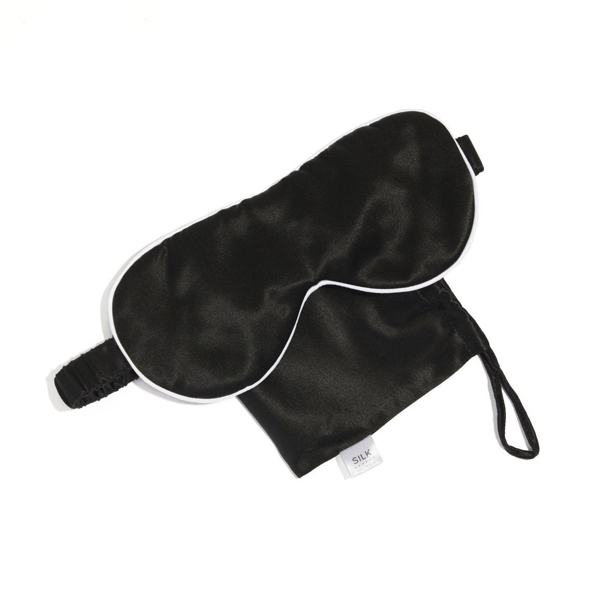 Silk Magnolia Silk Travel Eye Mask Black With White Piping