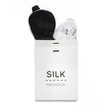 The gorgeous Silk Black with White Piping Travel Eye Mask from Silk Magnolias so comfortable you won’t want to take it off! Covered in 100% pure Mulberry Silk, filled with soft luxurious pure silk and with a comfortable elastic band, this sleep mask will help the delicate facial skin retain its moisture, reducing the appearance of fine lines around the eyes. Presented in a beautiful white box with a travel case for the mask, it makes the perfect gift for the person that has it all. Finish off your beauty sleep perfectly with this beautiful silk sleep mask.