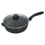 Ideal for cooking enthusiasts on the hunt for a versatile addition to their cookware collection, the Swiss Diamond 3 Litre Sauté Pan with Lid is guaranteed to transform your everyday cooking experience into something spectacular. High-quality and durable, the extra thick, cast aluminum body features a perfectly flat base that will not tip spin or warp while cooking. The new Swiss Diamond XD nonstick coating which contains 20 percent more diamonds than the previous Swiss Diamond HD nonstick coating. This, combined with the cast aluminum body, creates a tougher, more corrosion resistant layer for an increase in both durability and food release.