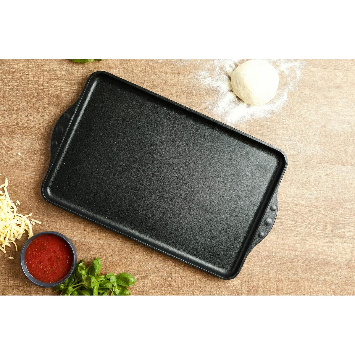 Swiss Diamond XD enhances this pan by improving the seal between the cooking surface of the pan and the aluminum base, creating a tougher, more corrosion resistant layer. Heat will spread evenly over the entire 17 x 11 inch cooking surface – with no hot spots. Looking for a premium quality baking sheet to add to your kitchen collection? No need to buy an extra when you have this pan. It doubles as a superior quality baking sheet, allowing you to finish those drop biscuits or sugar cookies in the oven (up to 500°F) and they will slide right off when cooled. Made in Switzerland.