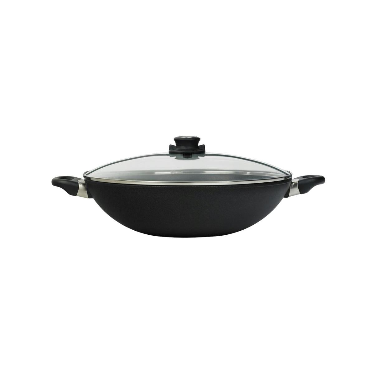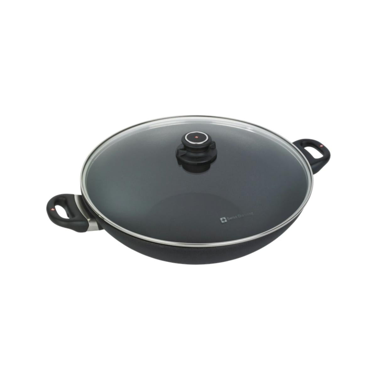 All Swiss Diamond XD pans feature a significantly improved seal between the cooking surface and the aluminum base, creating a tougher and more corrosion resistant layer. The heat-tempered glass lid features an adjustable steam vent knob, allowing you total control over the amount of moisture in your dish. PFOA-free and manufactured using an eco-friendly production process, the nonstick coating maximizes heat transfer to eliminate hot spots. Plus, this wok also includes a tempered glass lid and a bonus tempura rack for draining foods.