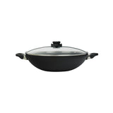 The newest addition to the Swiss Diamond wok family, this 36cm wok is made from heavy duty cast aluminum, and is coated with our new and advanced XD formula. This oversized wok is perfect for cooking stir-fry, lo mein, sesame chicken or any of your favourite Asian dishes, all without oil to keep your meals healthy. Designed for healthier and lighter cooking, the Swiss Diamond XD nonstick coating on this pan allow you to cook without access oils or butters, making every meal a little easier on the waistline. (18cm FLAT SOLID BASE)