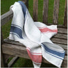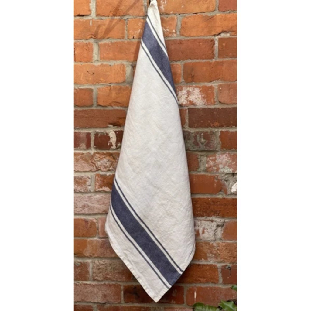 Linen Tea Towel “Vecchi Tempi - Blu” – “Blue”. Vecchi Tempi is an Italian expression for, old times, the olden days or in relation to products, nostalgic. This simple collection of stone-washed Italian linen cloths, complete with two sets of woven stripes will certainly take you back to the olden days.