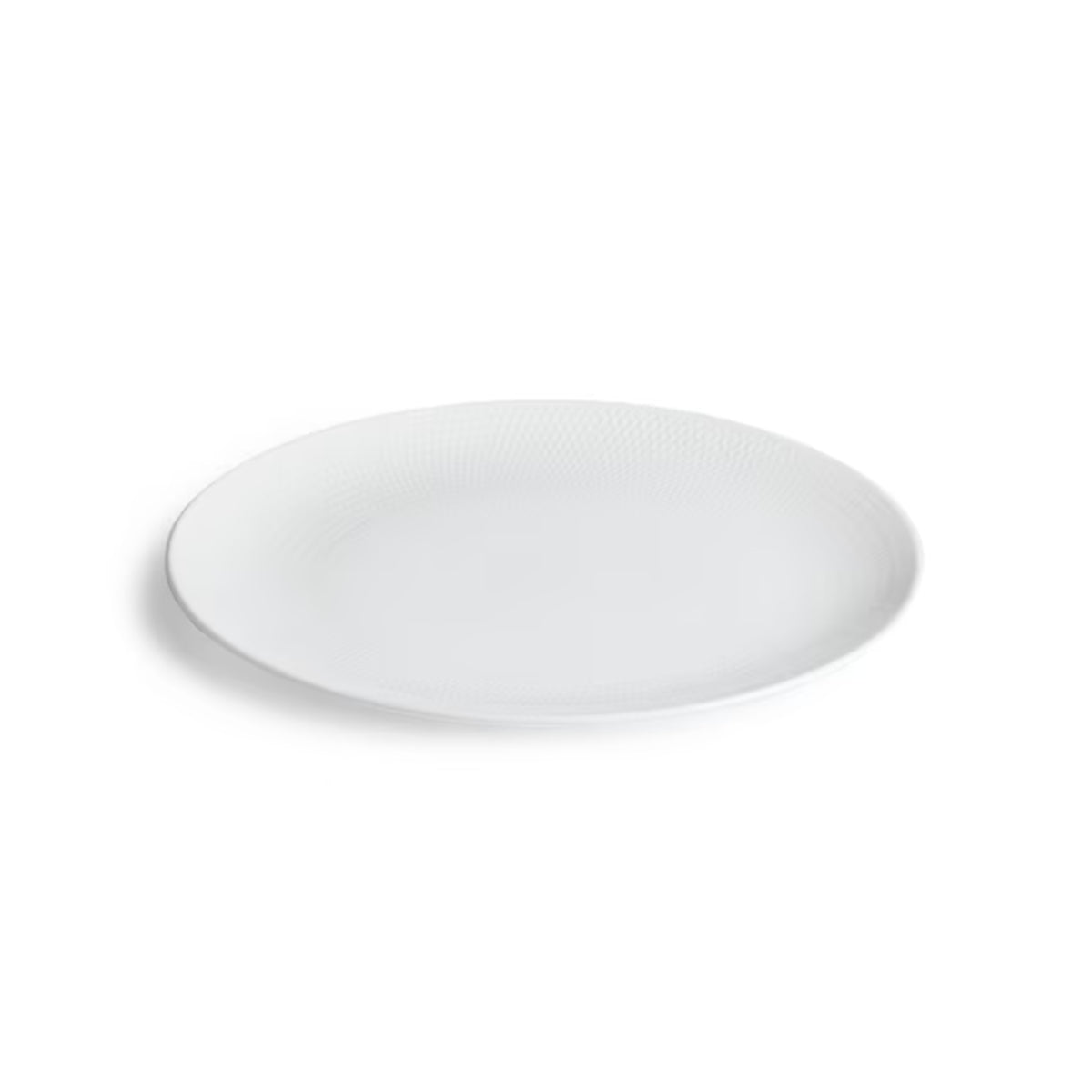 The Gio 28cm plate in fine white bone china is designed for everyday use, dishwasher and microwave safe, a mainstay of the collection.