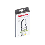 The Westmark "Monopol Edition" Stainless Steel Vegetable Peeler, makes peeling vegetables from potatoes to carrots, a breeze. The smooth blade glides across produce easily, as the ergonomic handle, with finger grips, allows for a secure hold. The in-built corer is ideal for removing potato eyes or any blemishes in produce.