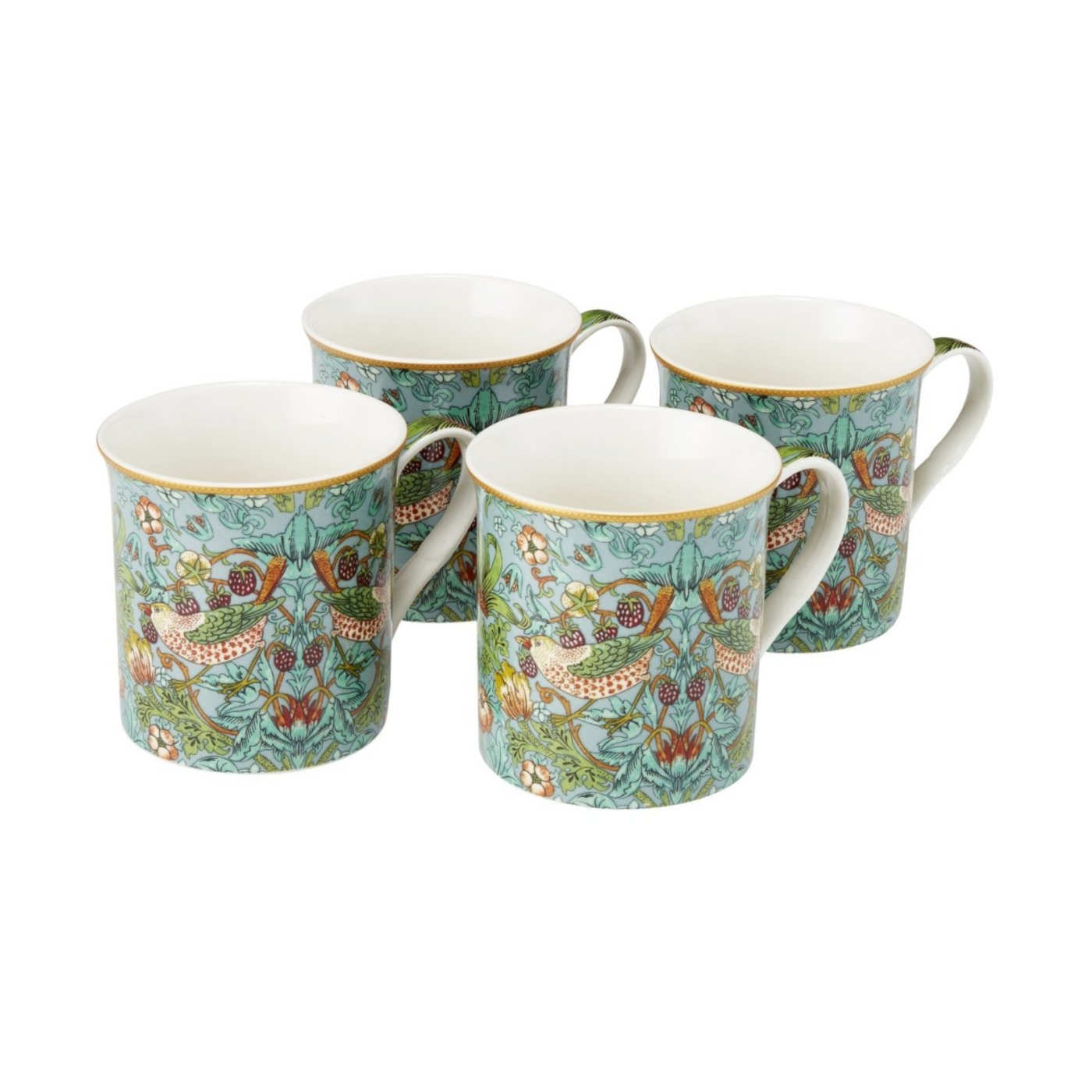 William Morris Co. Aqua Strawberry Thief Mugs 220ml (Set of 4)